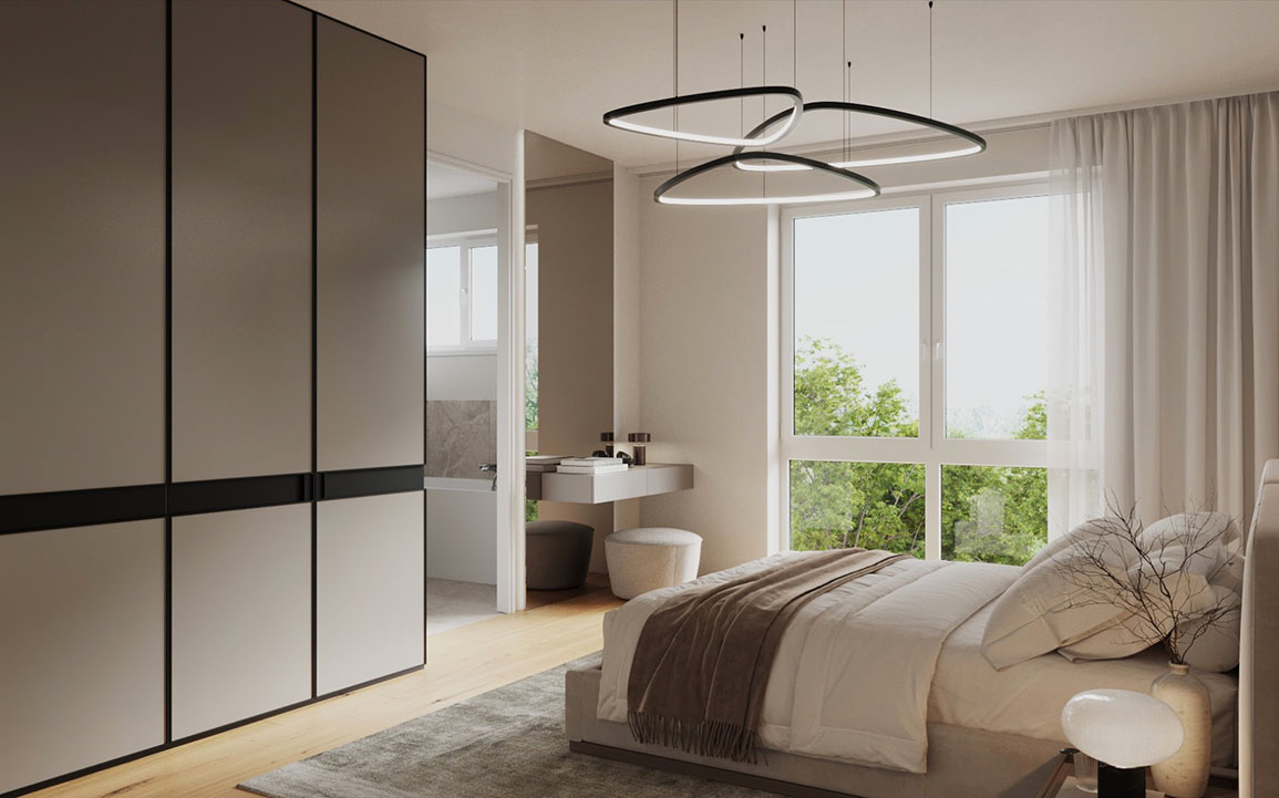 Leben im EDEN bedeutet Leben im Licht: Bodentiefe Fenster auf allen vier Hausseiten fluten die hohen Wohnungsdecken über den Tag aus immer neuen Richtungen mit Sonne. Ein echtes "Highlight" dabei: Die große, südgerichtete Fensterfront, die dank niedriger Nachbarbebauung einen spektakulären Weitblick eröffnet. Noch mehr Licht gefällig? Die großen Südbalkone und Terrassen bieten mehr als ausreichend Platz für Sonnenliegen, -Schirme oder die ein oder andere Sommerparty.